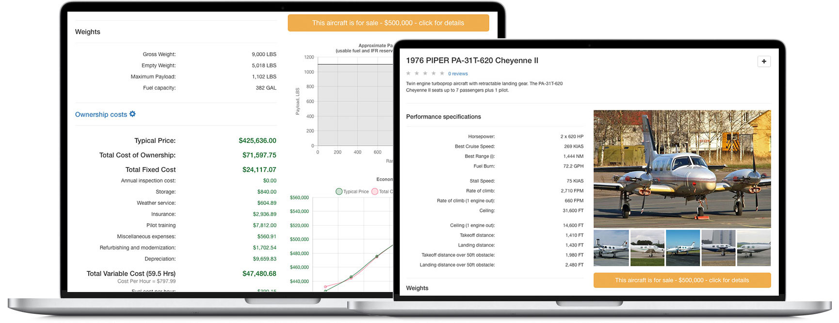 The only plane featured right next to the performance specs and ownership costs.