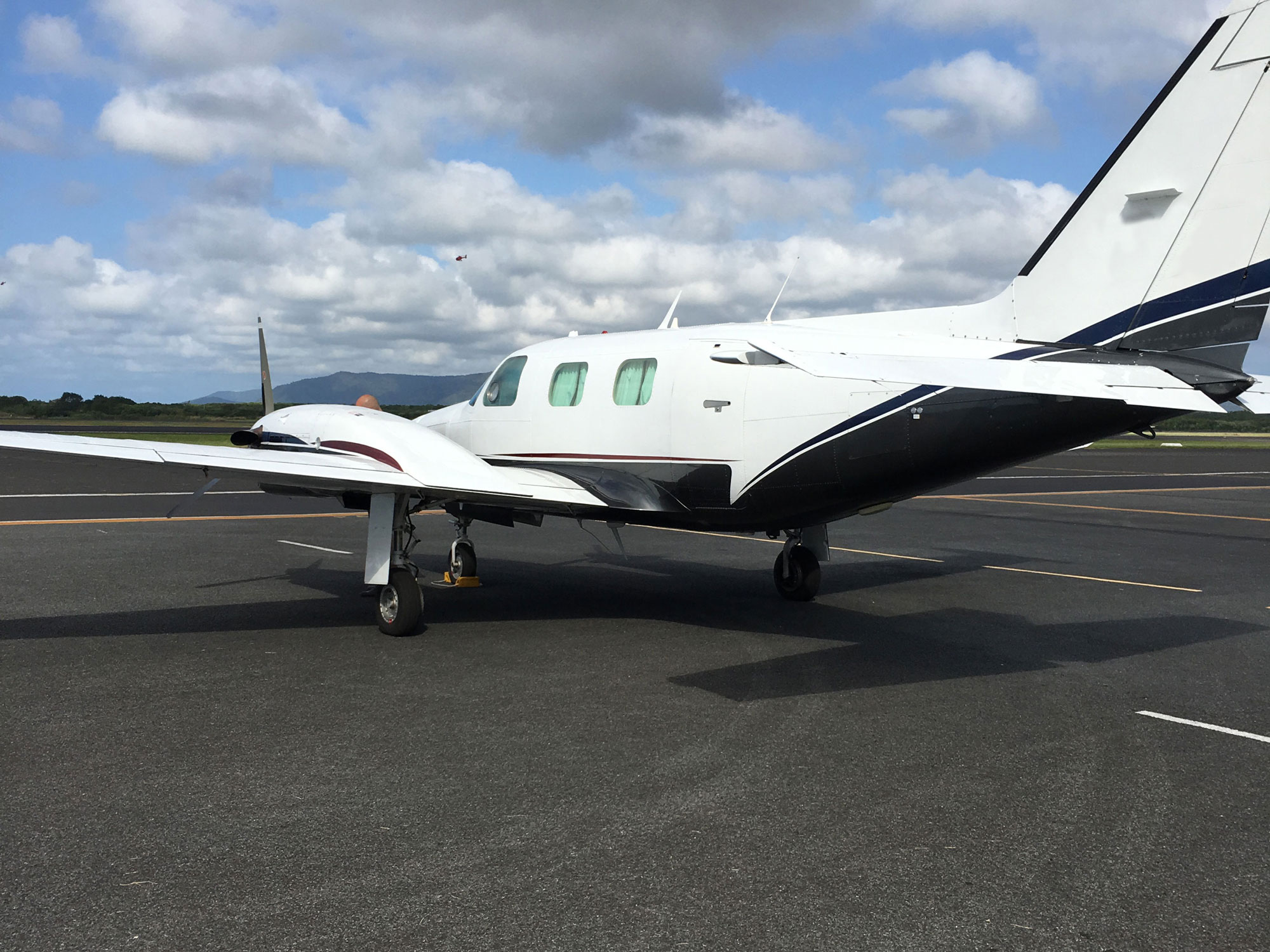 Twin engine turboprop aircraft with retractable landing gear. The PA-31T-620 Cheyenne II seats up to 7 passengers plus 1 pilot.